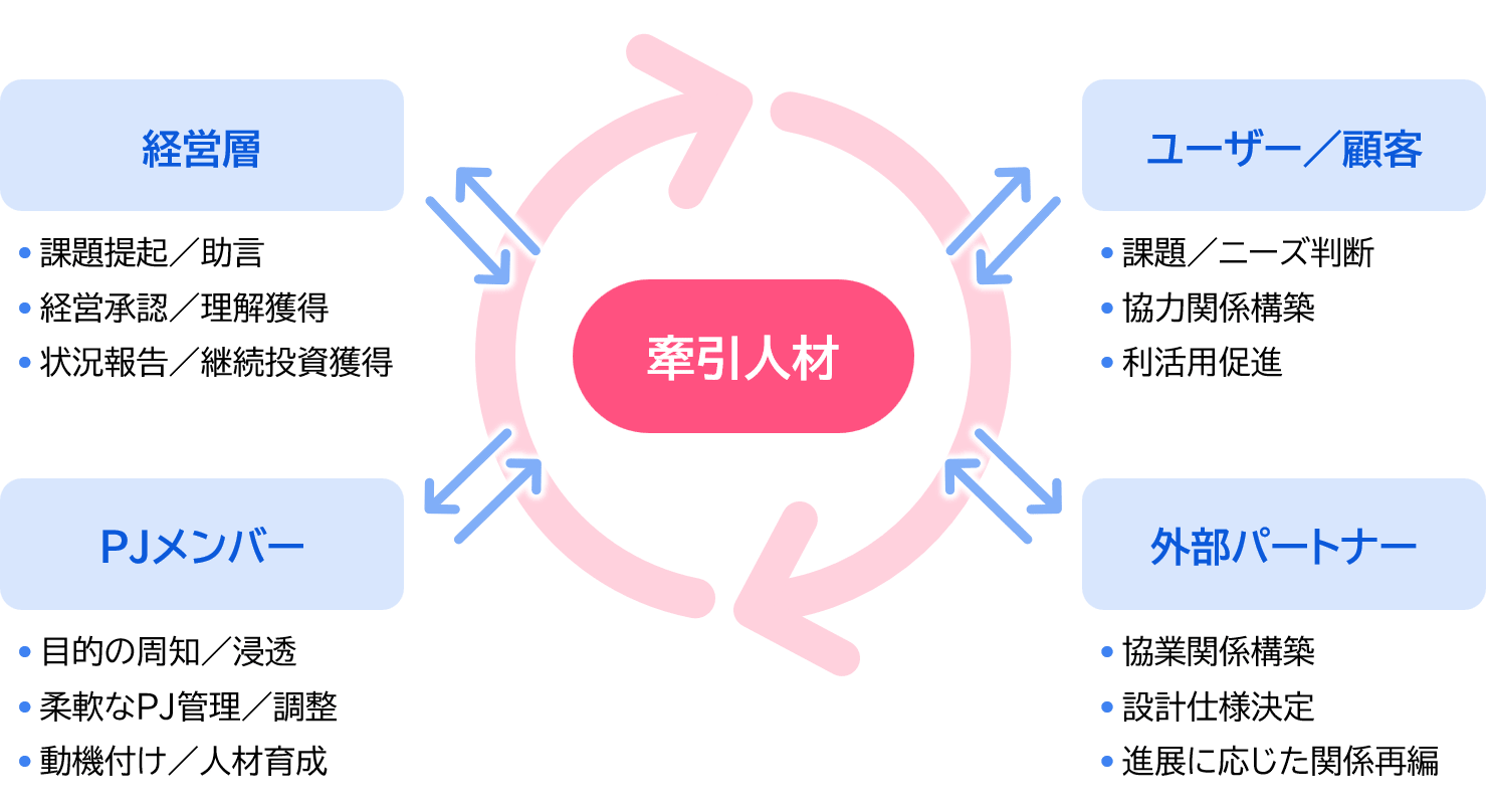 ※5:なお、ここでは牽引人材に注目したが、牽引人材以外の推進人材においても、補佐あるいは一部実施などにより連携タスクを担っていくことが重要と考えられる。