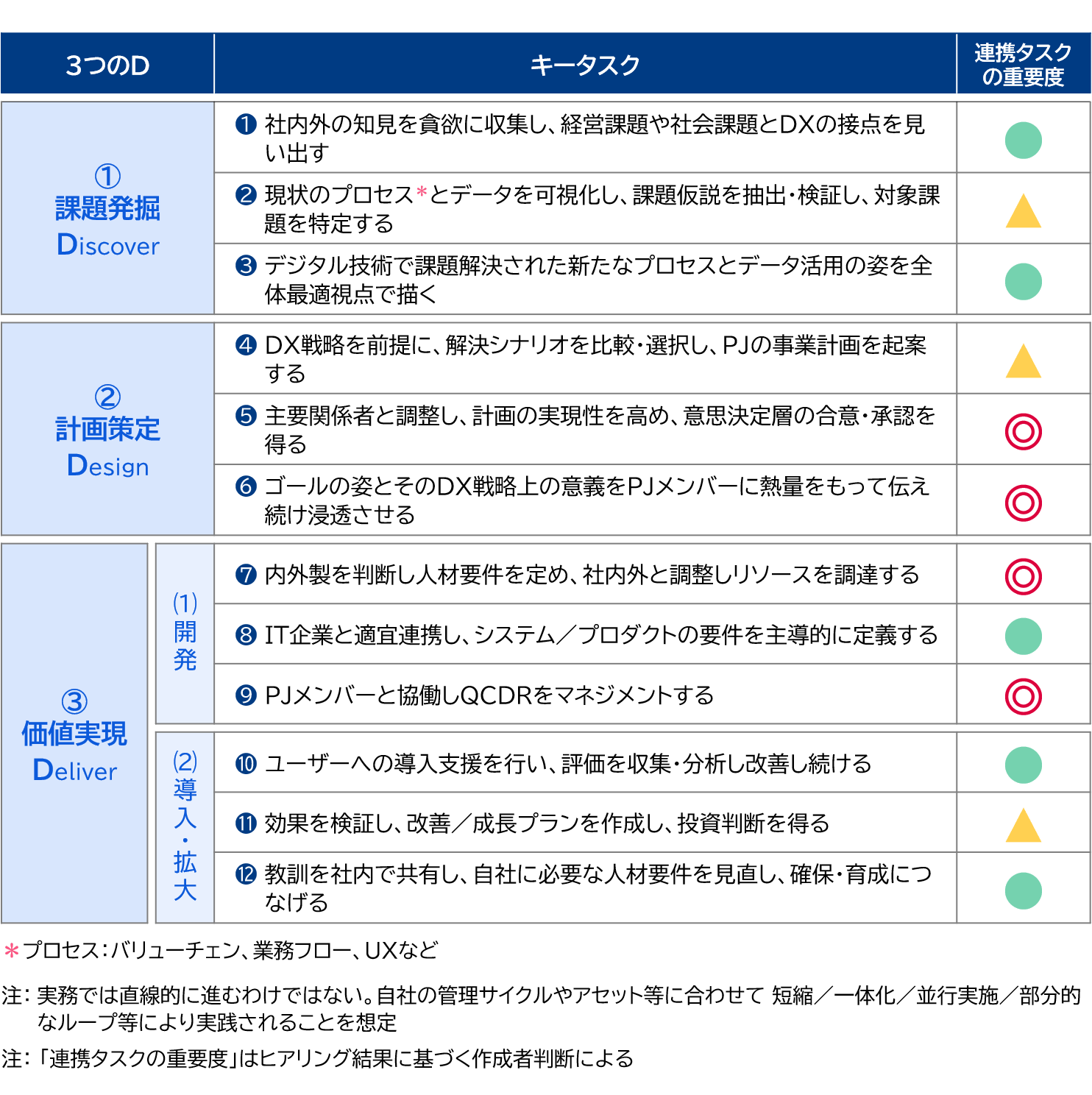 連携タスクを含む12のキータスク(3つのD)がDXの成功を支える