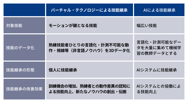表 バーチャル・テクノロジーとAIによる技能継承との比較