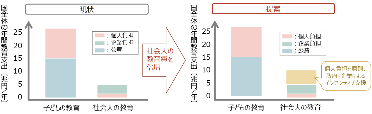 図表9-5 社会人教育費を倍増させ、リカレント教育の市場形成を