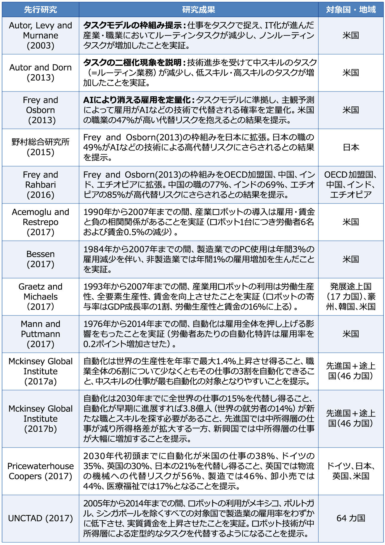図表3-1 技術革新が仕事に与える影響に関する主要な先行研究