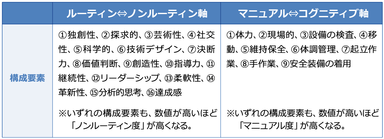 技術革新に伴って必要性が高まる職とは、どのような特性を持っているのだろうか。あるいは逆に、AIやIoE、ロボット技術の普及によって自動化・無人化が進む職の特性には、どのようなものが含まれるのか。