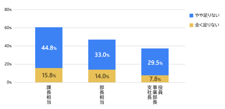 労働政策研究・研修機構の調査では、半数程度の中間管理職(部長・課長級)はマネジメント時間が不足していると感じている(図表2)。このことから、半数程度の職場では、人的資本経営への取り組みを実施する余裕がないと言える。