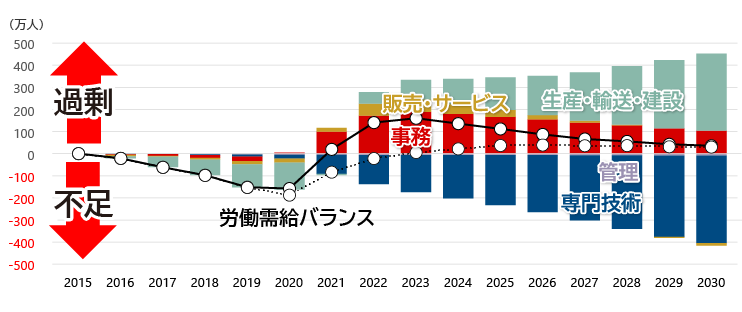 図3 ポストコロナの人材需給バランスの推移(2015 年対比、職業分類別)