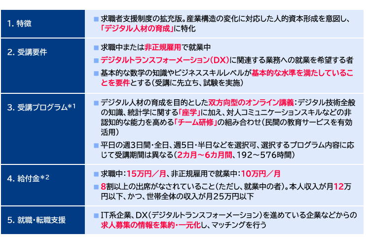 *2:「4.給付金」の内容は2022年3月末まで。以降は、求職者支援制度と同一の給付水準・条件に合わせる