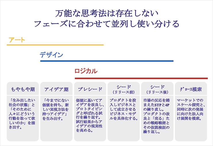 橋本:目線や捉え方を変えるためにやっている、と理解いただいた上で始めるのが肝心ですね。参加者の思考のモードや心理面に配慮することで、なじみのない方法もスムーズに取り掛かれますし、感性的手法が得意とするひらめきや新たな発見、視点の切り替えが活きるようになります。